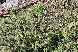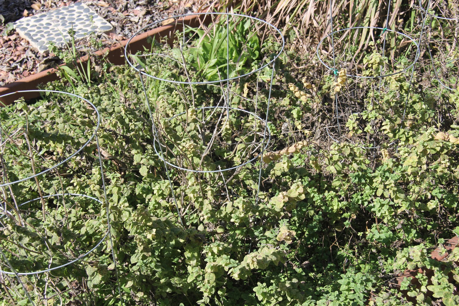 Today my dad and I went to the swap meet and purchased ten herbs, including mint, basil, and oregano. When I went to the backyard later in the day, I was surprised to see that new weeds had already sprouted up, even though I had recently weeded them. Like Dr. Alan Grant from Jurassic Park would say, "Life found a way." My mom and I weeded some of the ones not in the plots to make the garden a bit more aesthetically pleasing. I had to cut off some overgrown roots from the new guys to prevent another Mint Root Invasion of '12-'13. And this time, I added tomato cages to some of the herbs so that they would grow neat and orderly in an upward direction. My next mission to plant some tomatoes and peppers in Plot B.