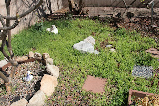| Plot C(I moved the garden decorations to this plot so that I could loosen up the soil of the other two plots.) |
