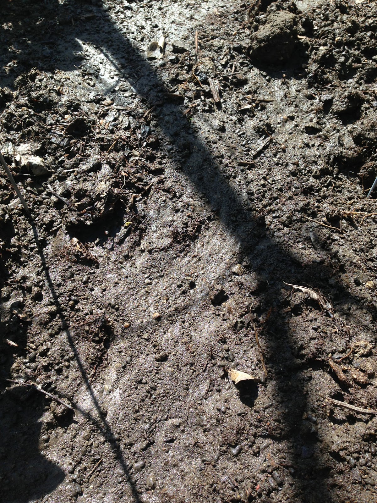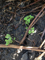 Today I noticed that the water from the hose was beginning to erode the soil. The plot isn't leveled, with some soil stacked higher than other areas, so when I water the plants, it streams down and mimics a river. I also noticed the return of the mint. The roots are so frustrating. I'll be sure to trim the roots next time before I plant a plant.